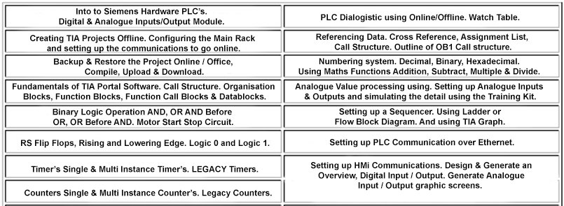 No prior use or knowledge of Siemens PLC Systems is necessary, but one assumes that students can operate a keyboard and have PC computer skills.
